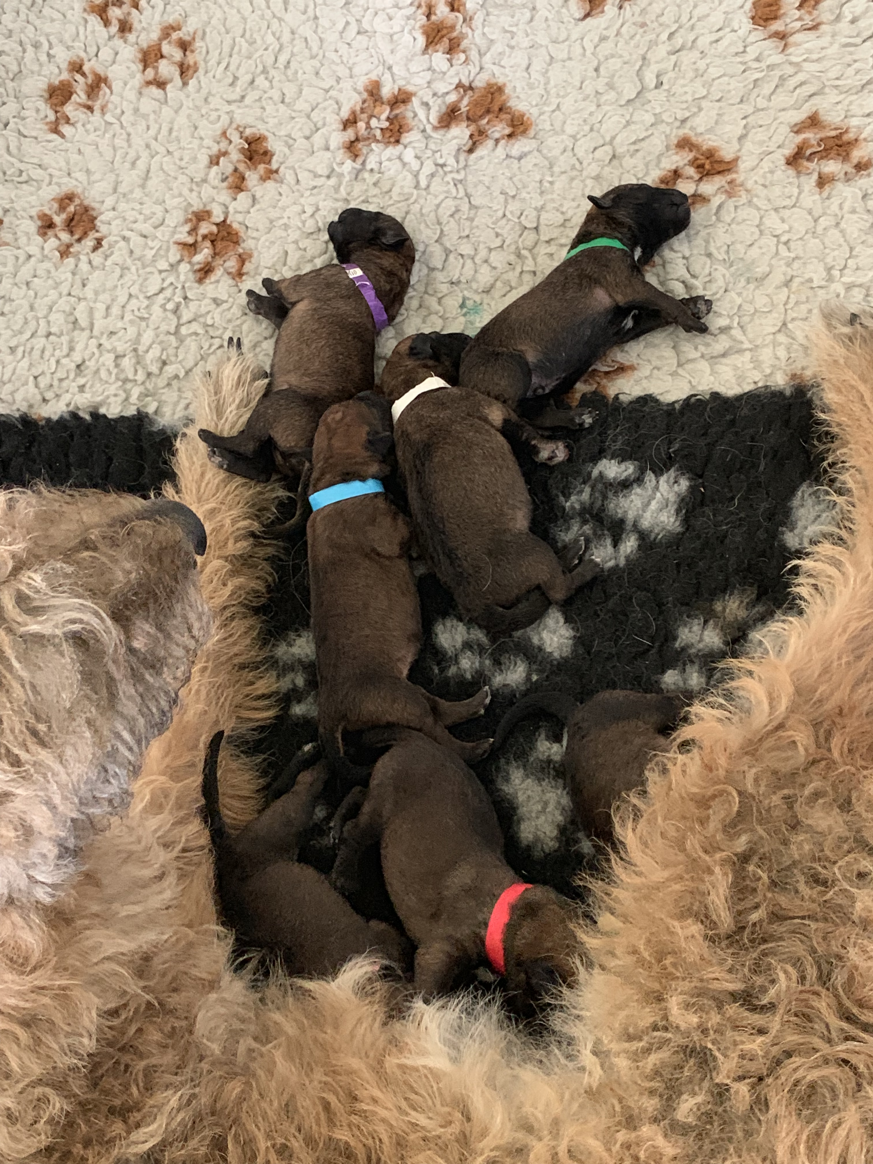 In de ochtend komt de dierenarts voor de nestcontrole, ze neemt uitgebreid de tijd. Sterre vindt het allemaal prima. Knuffelt met de dierenarts en laat zich temperaturen, betasten en krijgt tot slot een aai over haar bol. Ze heeft wat verhoging maar dat is normaal in deze fase, vertelt de dierenarts, het lijf moet alles nog op orde krijgen na de bevalling. De melkgift is goed en de temperatuur zal de komende dagen weer gaan zakken.