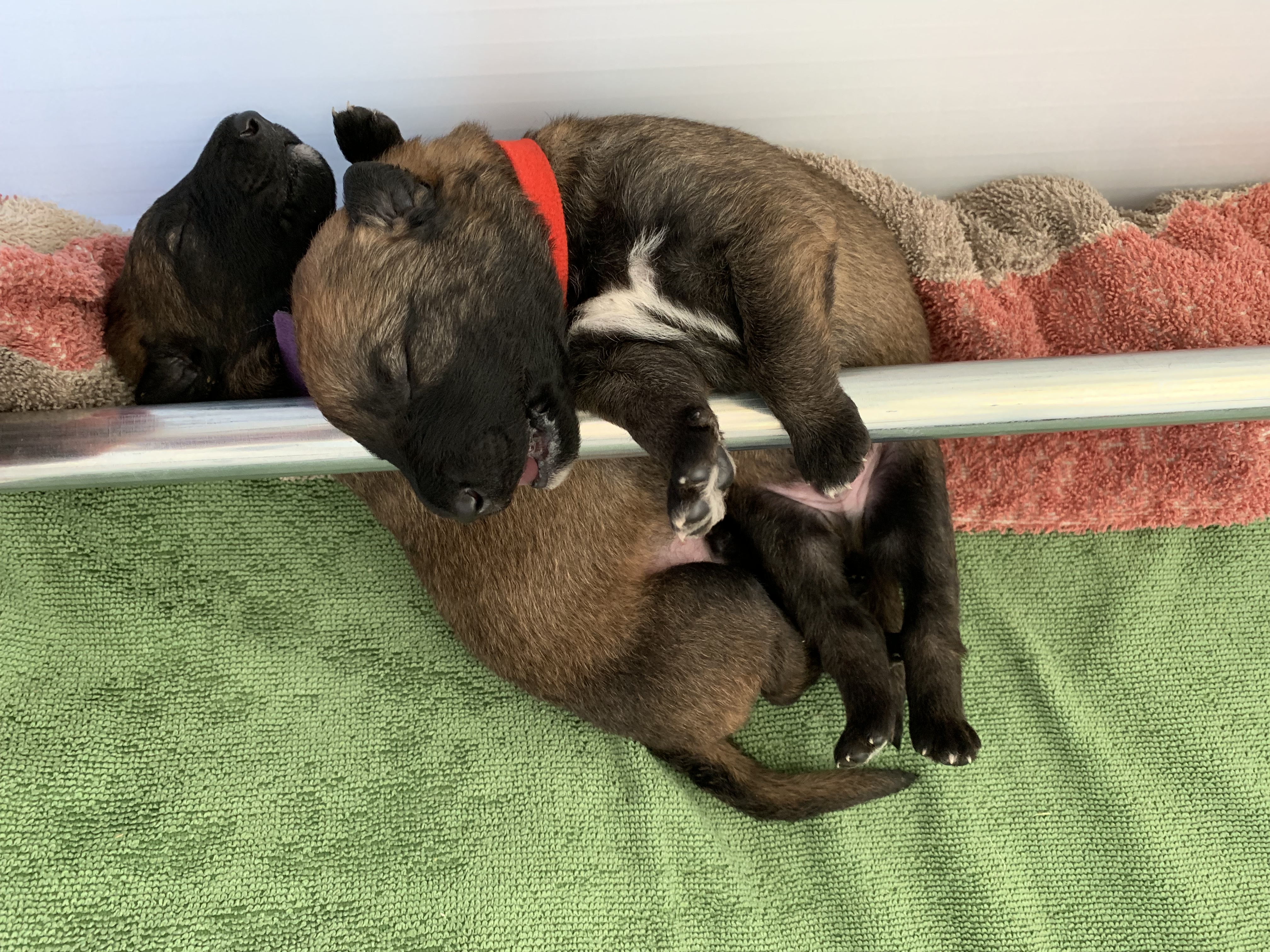 Het is letterlijk om de pups te behoeden tegen doodgedrukt worden tegen de zijkant. Als Sterre tegen de kant gaat liggen, kan ze met haar 20 kilo een pup smoren. Die stang houdt genoeg ruimte voor de pup om weg te komen. Al hoor ik af en toe wel een gesmoord protest 👀, Sterre heeft een dikke vacht die nogal veel warmte creëert wanneer je als argeloze pup achterlangs wilt lopen.