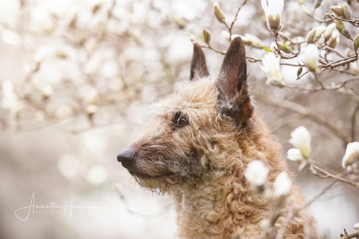 Deze magnolia en deze knappe Laekense herder Sterre staan/wonen bij Margreeth š