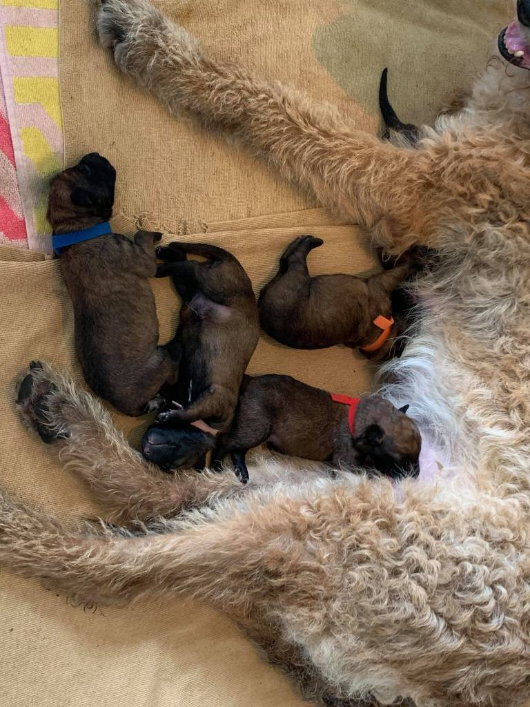 De dag was dermate enerverend dat ik pas de volgende dag aan mijn wachtlijst toe kwam. Mensen bellen, héél blij maken of echt teleurstellen. Overlegd met collega fokkers wie er van hun lijst kan en wie er misschien nog een plekje krijgt. Nog nooit zoveel aanvragen voor een reu gehoord of gezien. Maar goed, er lopen zeven hele blije families rond, inmiddels.