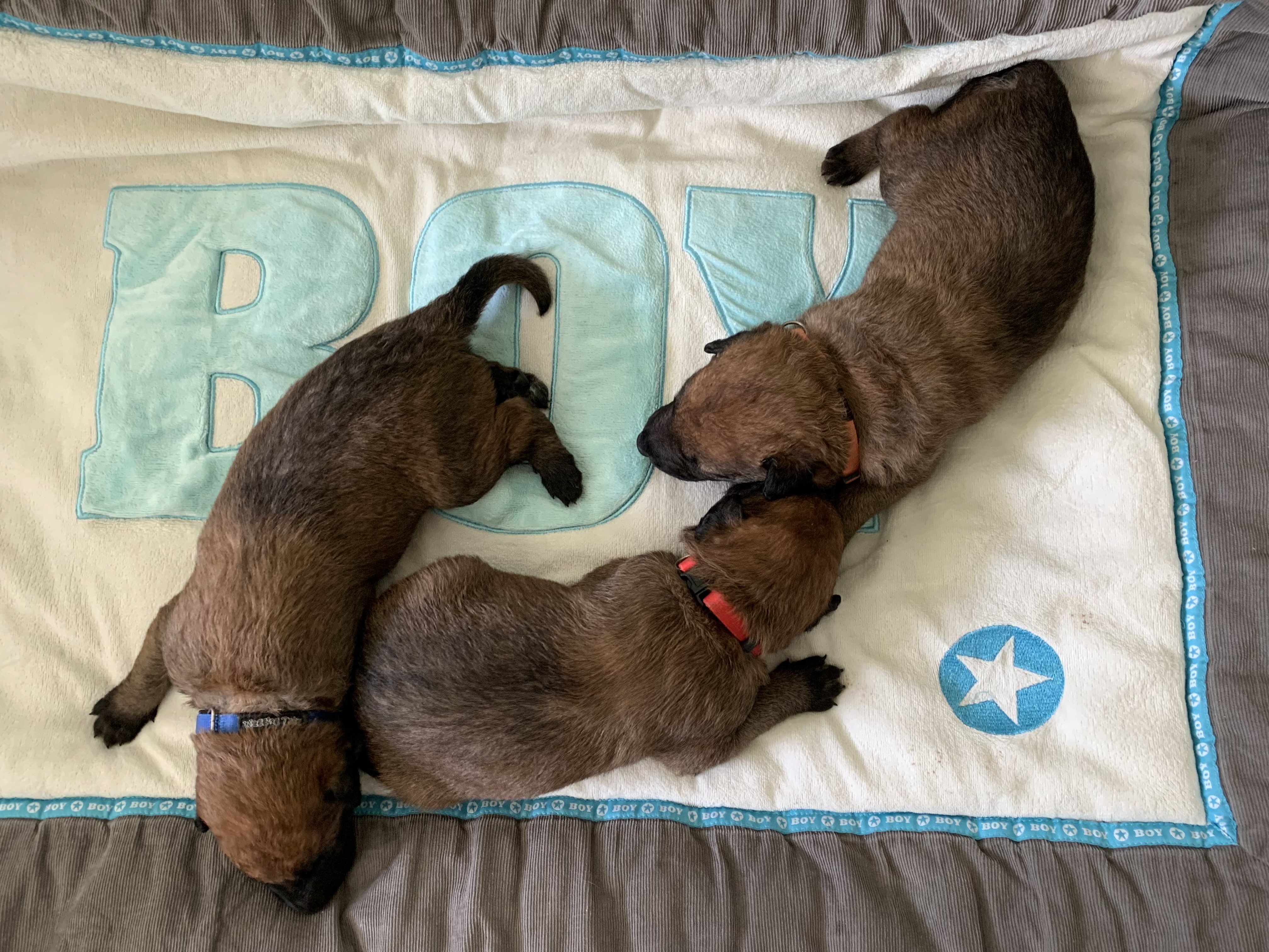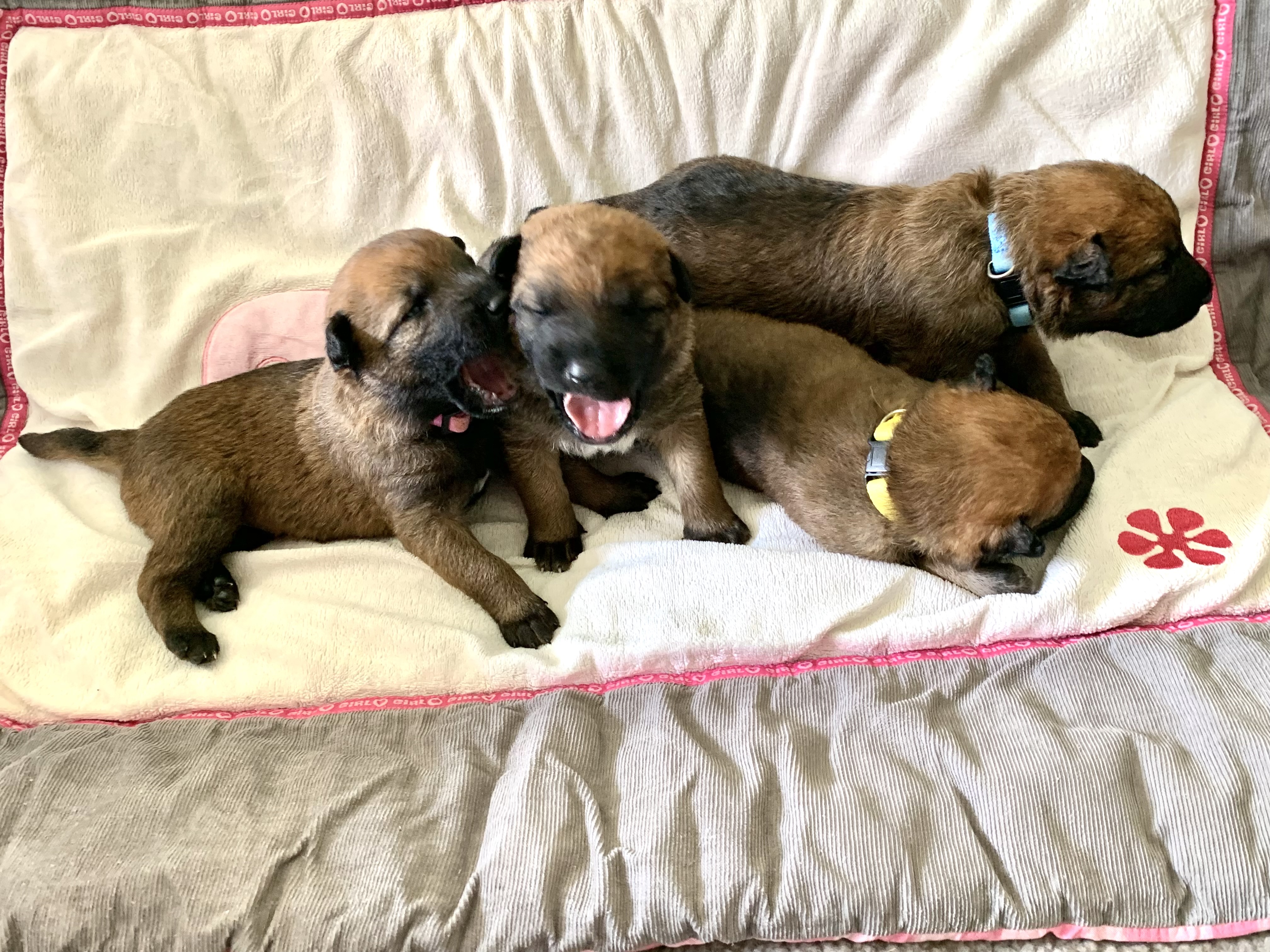 Het zijn stevige pups, met veertien dagen wegen ze tussen de 1200 en 1350 gram. Sterre is, net als de vorige keer, een uitstekende moeder. Ze wast, verzorgt en voedt ze de hele dag en nacht door.