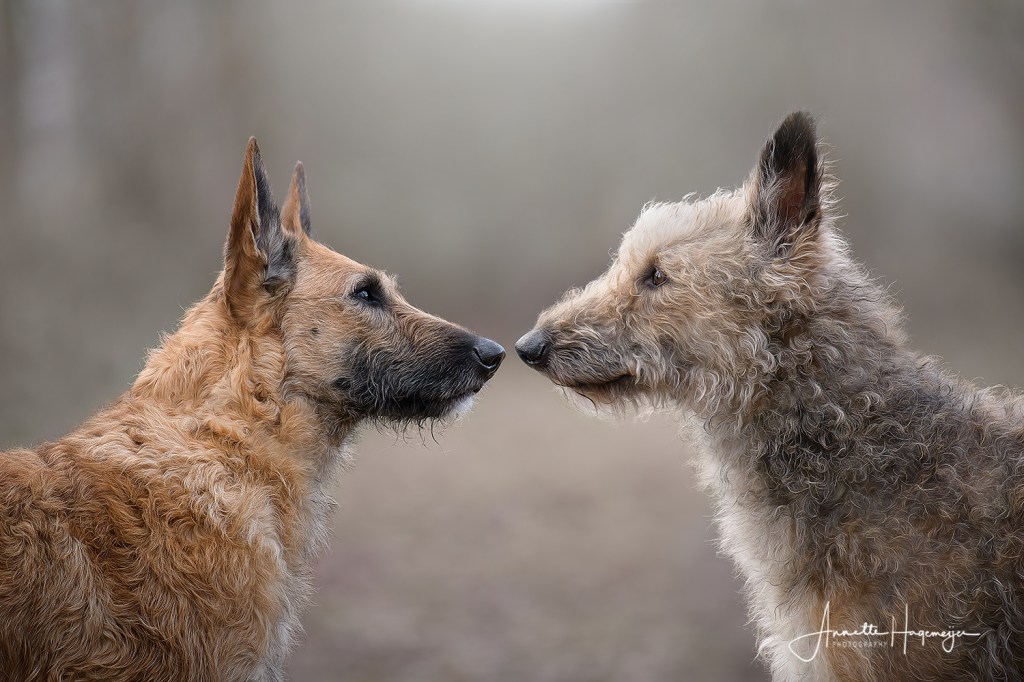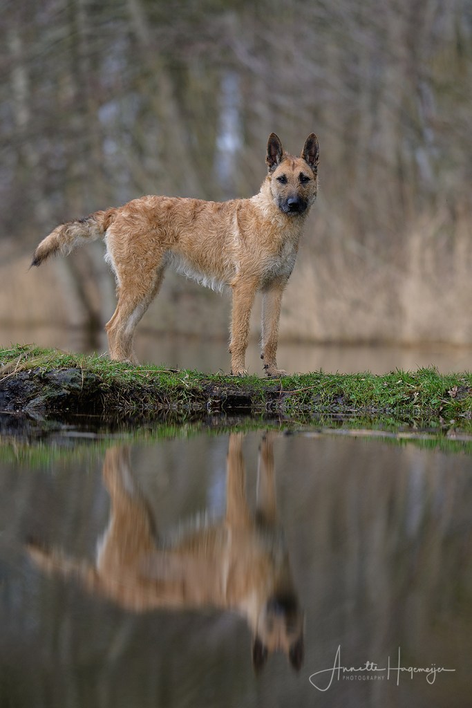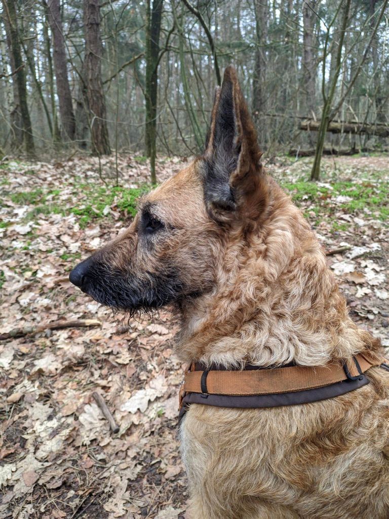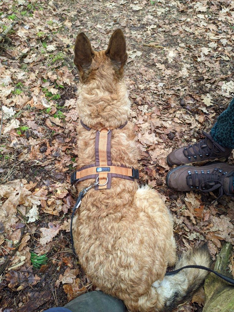 Met gedragsdeskundige Hermina doen we de lessen op straat, in het dorp en met andere honden, alsook wandelen zonder trekken. Ze is leergierig en heeft een enorme “will to please”. Auto’s en fietsers vormen nu geen trigger meer. Maar een loslopende hond die recht op haar afkomt, daar vindt ze wat van.